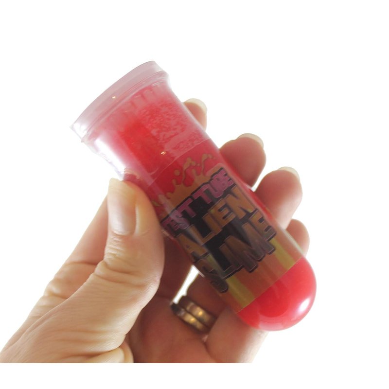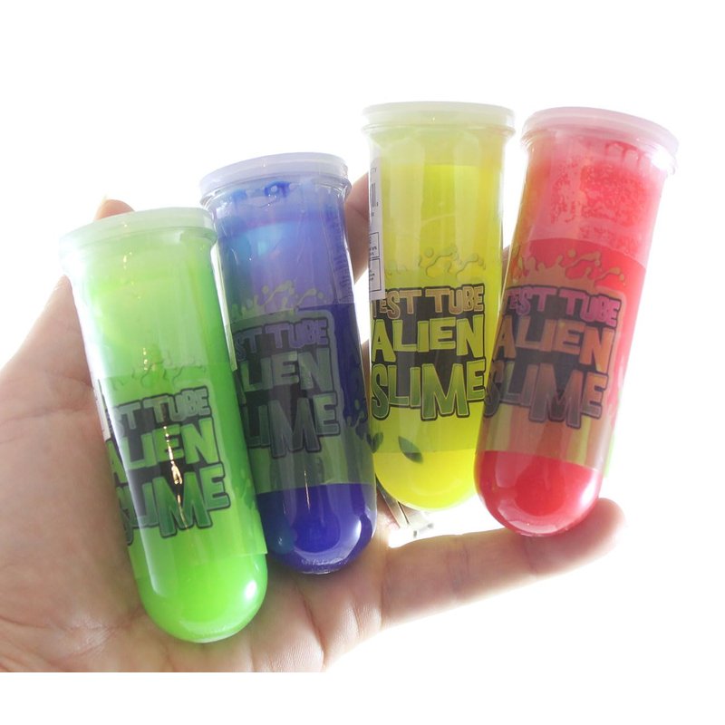 - These test tubes are filled with thick drippy slime and a mini alien figure. When you tip the tube, oozy slime and alien falls out and is ready to play with.