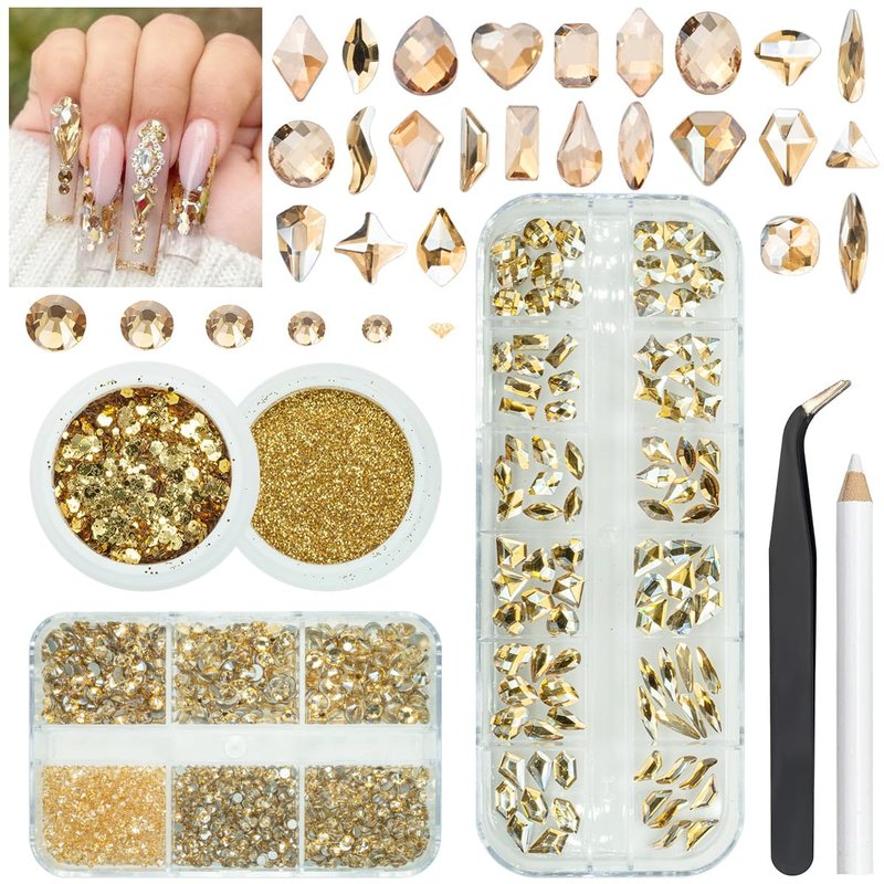 - ❤【Perfect Gift & Reliable customer caring and service from Qiipii】Mixes shaped Champagne golden 3d gems for nails rhinestones glitter are perfect gift for girls and women. The glass flat back gems can make your nails more dazzling and charming. Qiipii put our user experience as our priority and we always doing our best to performing our promise. Feel free to contact us if you have any question or advice to us, we will reply all within 24hours. Thank you. :)