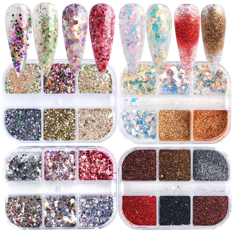 - Holographic Shiny Nail Art Flakes:Quantity,3 Boxes,Mix and match different glitter colors,Green purple gold mixed holographic glitter,Irregular sequins flash, hexagonal dots flash,create personalized nail art that reflects your style.Sufficient quantity and variety,enough to facilitate sharing with friends at nail art parties.