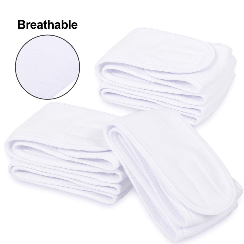 4 Counts Spa Facial Headband Whaline Head Wrap Terry Cloth Headband Stretch Towel with Magic Tape for Bath, Makeup and Sport, 3.5" Wide (White)