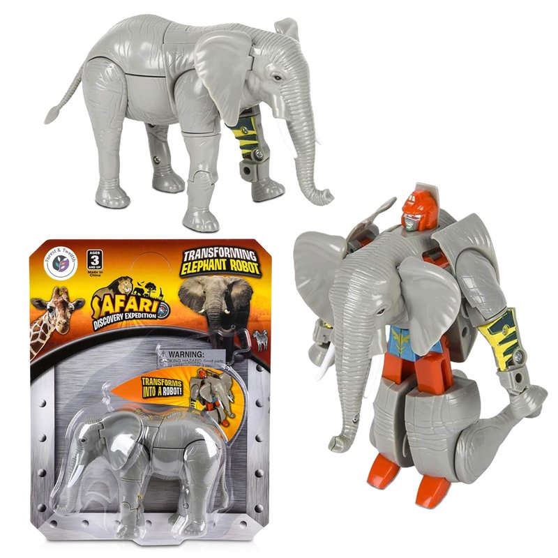 - TRANSFORMS FROM ELEPHANT TO ROBOT - Manipulate the parts of the elephant and it changes into a robot figure in seconds!