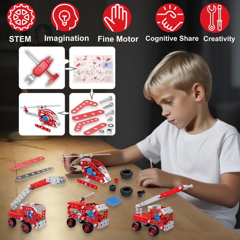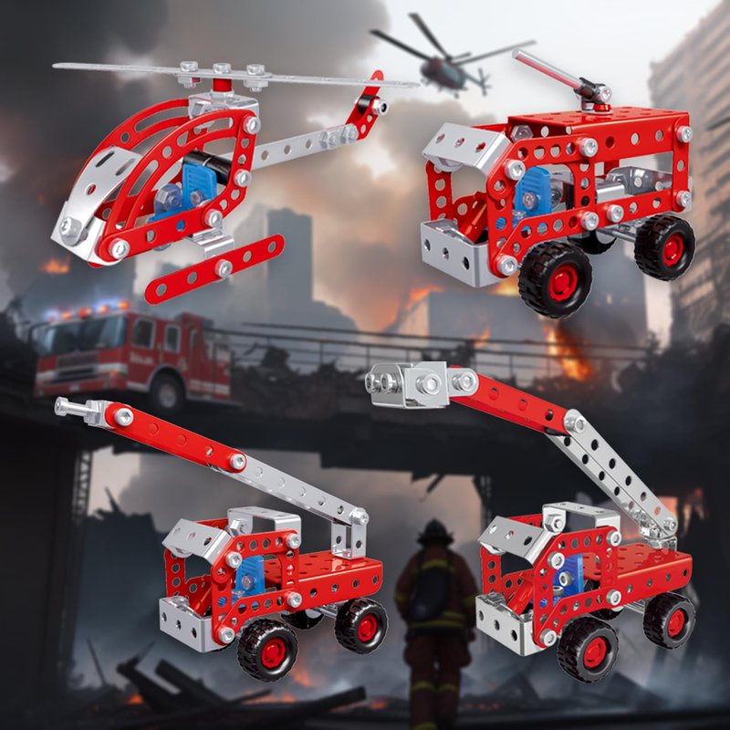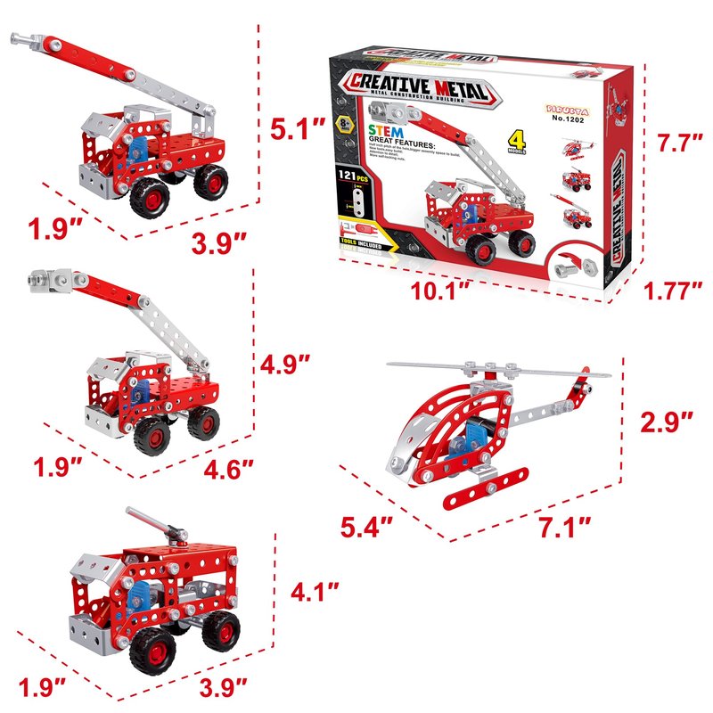 PIRUETA Metal Building Toys 4 in 1 Firefighter Model Set For Kids Which Simulation Design And Clear Instructions Can Completely Keep Your Children Busy And Entertained For Hours! ► Realistic Detail Design Compared with the plastic version, we use metal material to make it more realistic and firm. ► With Wrench And Screwdriver & Clear Instructions We have equipped a wrench and a screwdriver to make it easier for children to assemble. In addition, you don’t have to worry about assembling toy that is too difficult for your children. We also have prepared clear instructions for the children and everything is clearly marked. Trust me, For children, assembling this building set will get a great sense of accomplishment.
