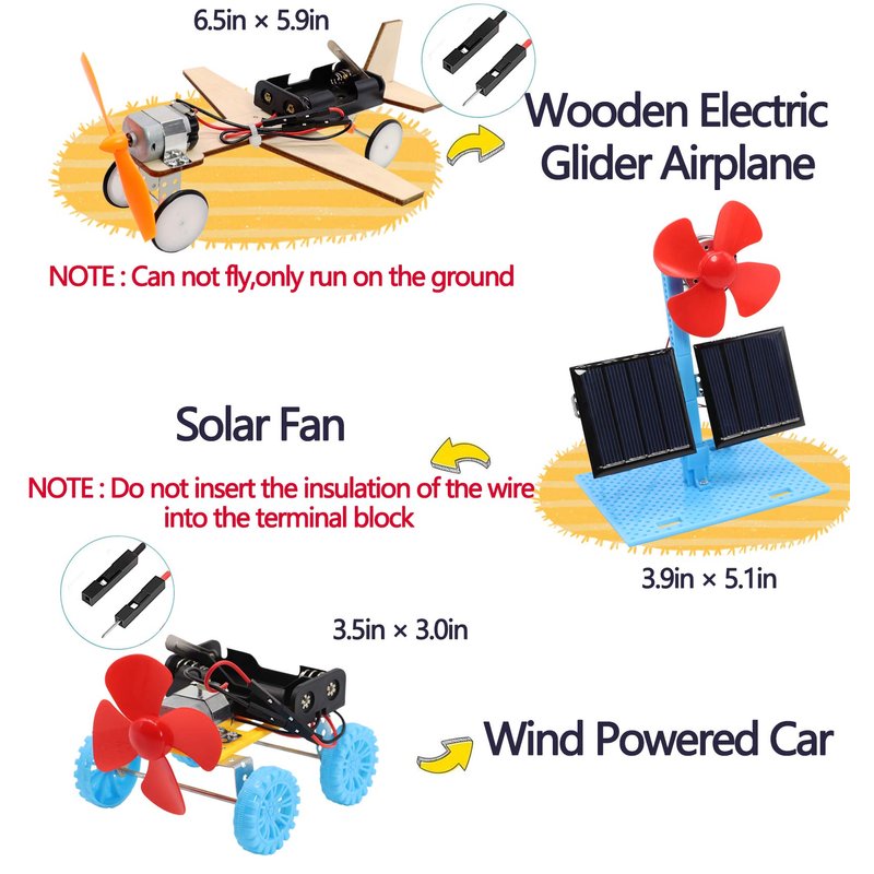 - 🌞【Simple and Easy Science Project】Encourage our kids to explore solar energy from these DIY solar kits.Kids can also build cars and airplane electronic kits,learn basic principles of simple circuit, electricity.(No welding)Perfect gifts for young scientists with an interest in renewable energy sources.