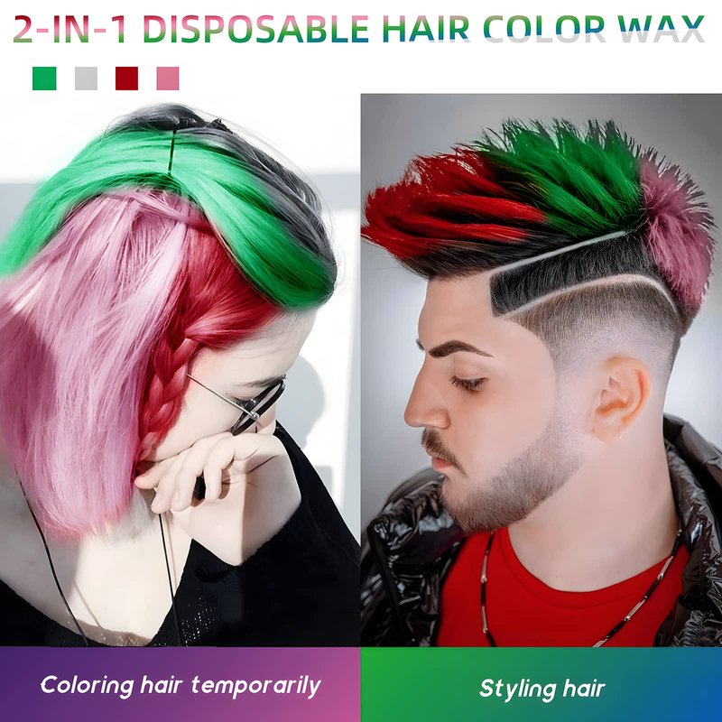 4 in 1 Temporary Hair Wax Color Grey Pink Red Green Instant Hairstyle Cream Hair Pomades Instant Hair Dye Wax for Women & Men Christmas Cosplay Date