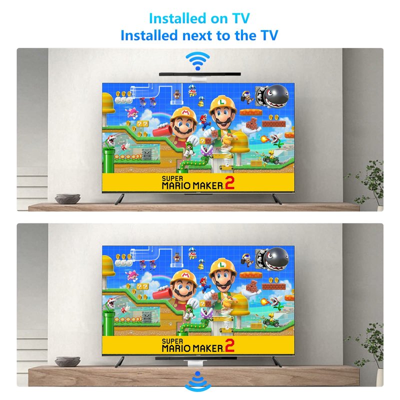 - ✨🎁🎮『UPGRADED VERSION WII SENSOR BAR』: Compatible with all Wii controllers, motion plus controllers and other Wii controller addons. Comes with a clear stand, it with adhesive for easy attachment to tv, monitor or any smooth surface. Quick and easy install, just like the original sensor bar with simple plug and play