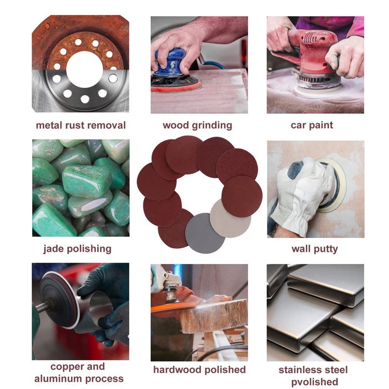 The set includes one 4 Inch pad for each Grit #50 #100 #200 #400 #800 #1500 #3000 #6000 , sandpaper for each Grit 60#,2 x 100#,240#,2 x 400#,800#,1500#,3000#,5000#,wool felt polishing pad ,drill adapter ,hread hook and loop backer pad