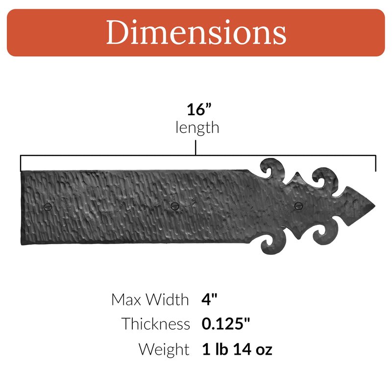 - Made by hand: crafted heavy duty solid iron decorative hinge straps are skillfully made by experienced metal artisans. These decorative metal straps for wood are great accents for gates & doors.