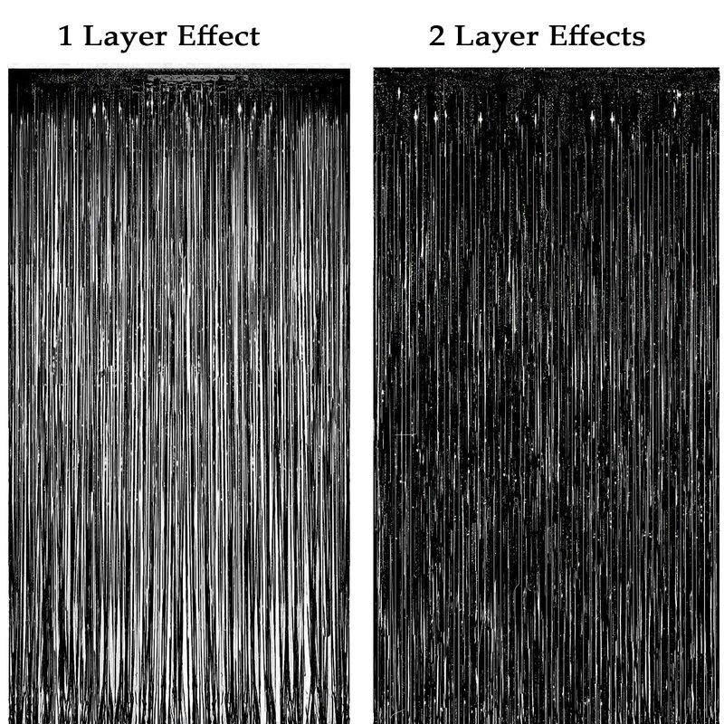 - ๐ธ PACKAGE CONTENTS - Pack of 4 | Black foil fringe curtain, 3.3x8.2 Feet/ 1x2.5 meters each. Large size, enough to arrange your party background. You can also trim the length and shape you want at will, and the trimmed part can be used as table confetti. It is recommended to choose more than 2 layers (or 2 colors) to get better coverage and visual effects, create your own DIY decor for your party.
