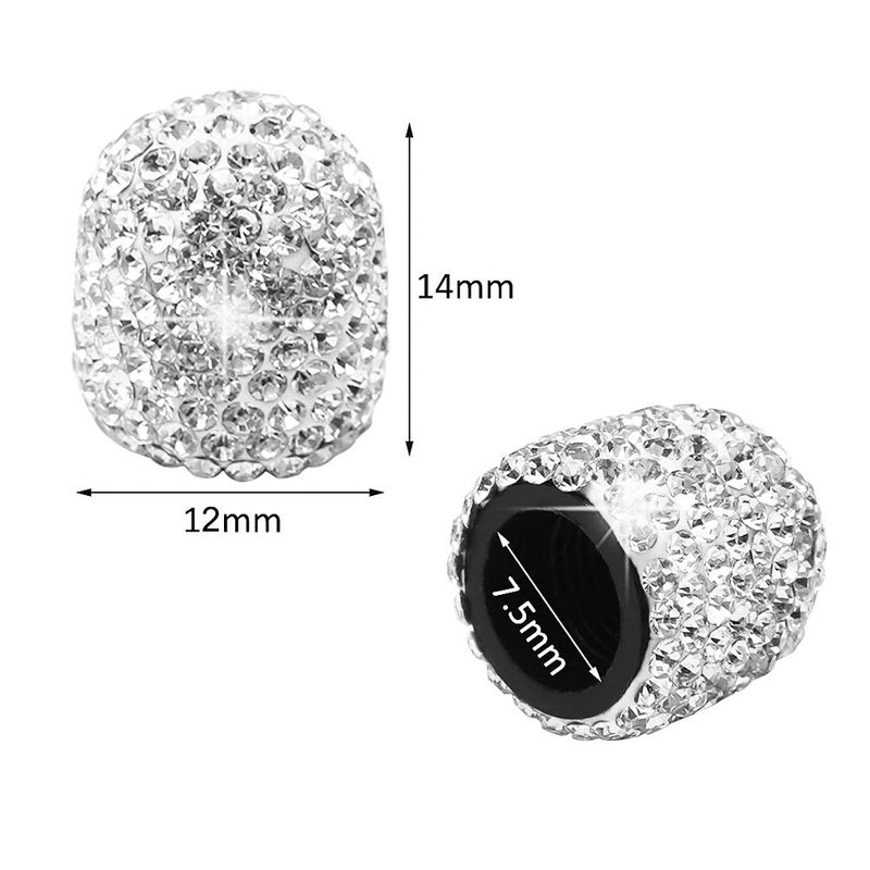 - 3 The size of the cap is 0.47” * 0.55”/ 12*14mm(H*W). The inner diamater 0.29Inch/7.5mm It is suitable for standard American (Schrader) valves.
