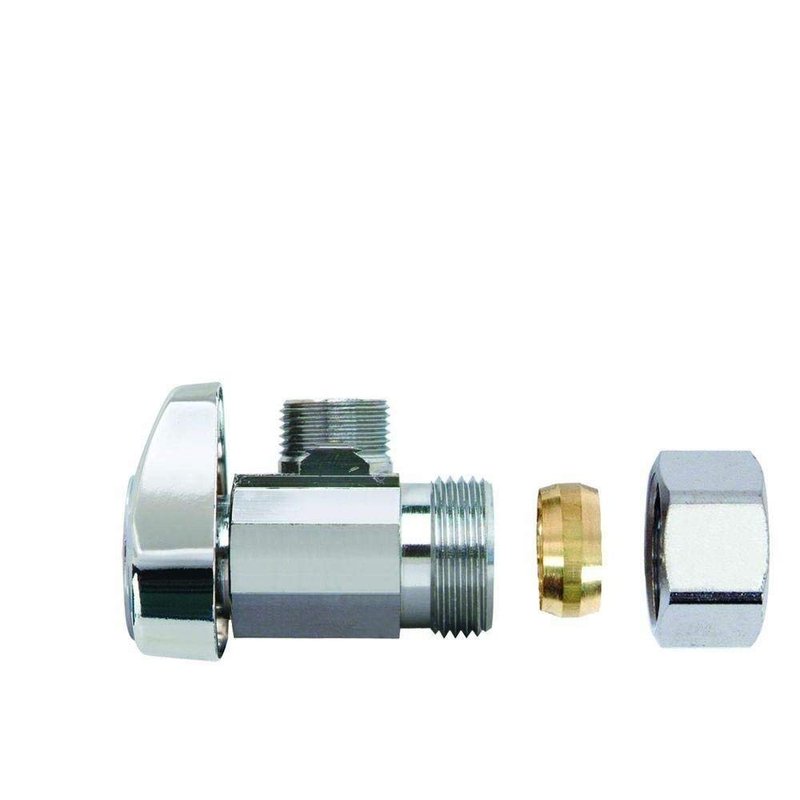 This genuine BrassCraft angle stop valve has 1/2-inch nominal (5/8" OD) inlet x 3/8-inch OD outlet and is chrome-plated lead free brass. For use in potable water distribution systems. Not intended for recirculating water systems that produce continuous temperatures above 115-degree F. Each pack includes 4 valves.