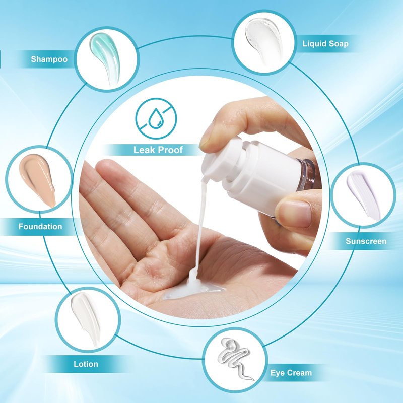 - 【Leak Proof & TSA approved】Airless Pump bottles are leak proof. Durable and easy to clean, suitable for travel and airport security.
