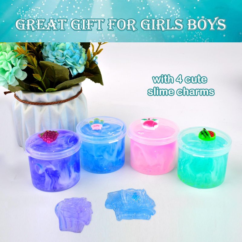 4 Pack Clear Slime, Crystal Scented Slime Super Soft, Pre-Made Slime Toy for Kids 4-12, Birthday Slime Party Favors, Slime Bulk for Boys Girls