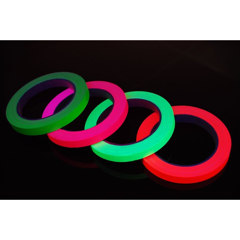 - 4 great fluorescent blkacklight resposive colors at 1/2 inch width x 20 yards length per roll