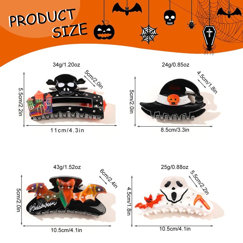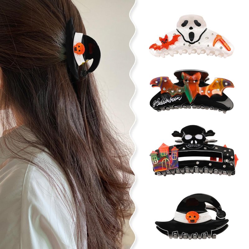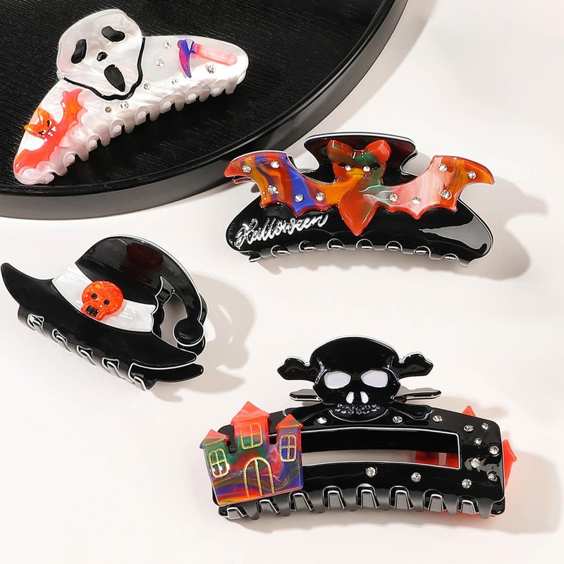 4Pack Halloween Hair Clips Baw Ghost Witch Hat Skull Claw Clips Non-slip Hair Clips Strong Hold Hair Jaw Clips for Women and Girls Halloween Hair Accessories