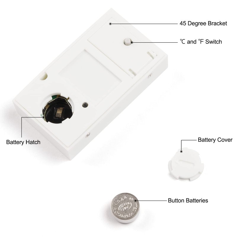 - 【℃ and ℉ Switch】The digital thermometer can easily switch the temperature unit, divided into Fahrenheit and Celsius. 【45-Degree Angle Bracket】Mini Digital LCD Humidity