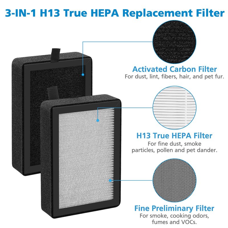 - 【3-Stage Filtration System】LV-H128 True HEPA replacement filter is adopted the 3-in-1 True HEPA Filtration System, which effectively attaches at least 99.97% of airborne particles as small as 0.3 microns in the air, such as dust, smoke, pollen, hair, and Odor.