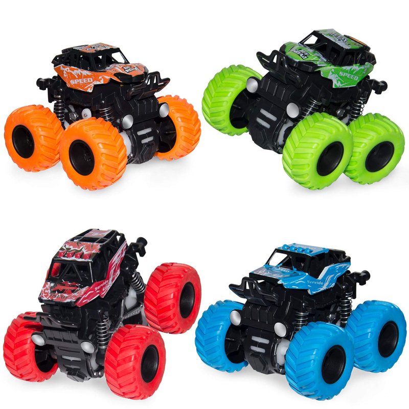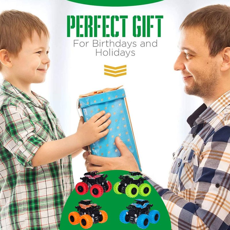 4 Pack Monster Truck Toys for Boys and Girls - Friction Powered Push and Go Toy Cars, Inertia Car Toy Set Stunt Toy Vehicles, Birthday Party Supplies for Toddlers Kids Ages 3+