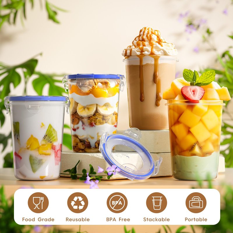 - Overnight Oats Containers with Lids: Package includes 4 packs 16oz plastic containers.Great for daily kitchen use.