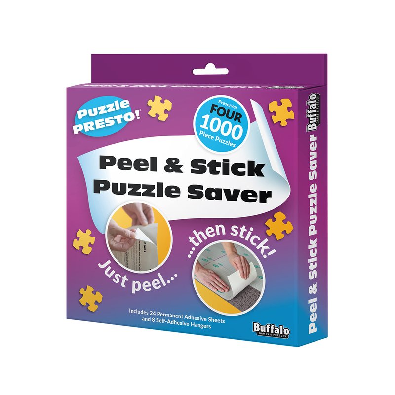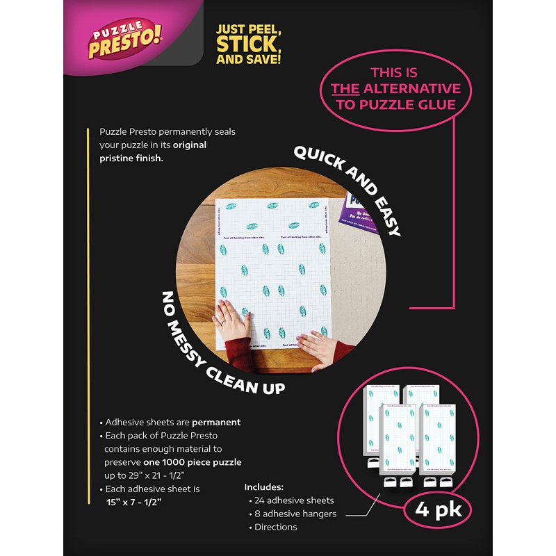 (4 Pack) Puzzle Presto! Peel & Stick Puzzle Saver: The Original and Still The Best Way to Preserve Your Finished Puzzle! 24 Adhesive Sheets and 8 Adhesive Hangars.