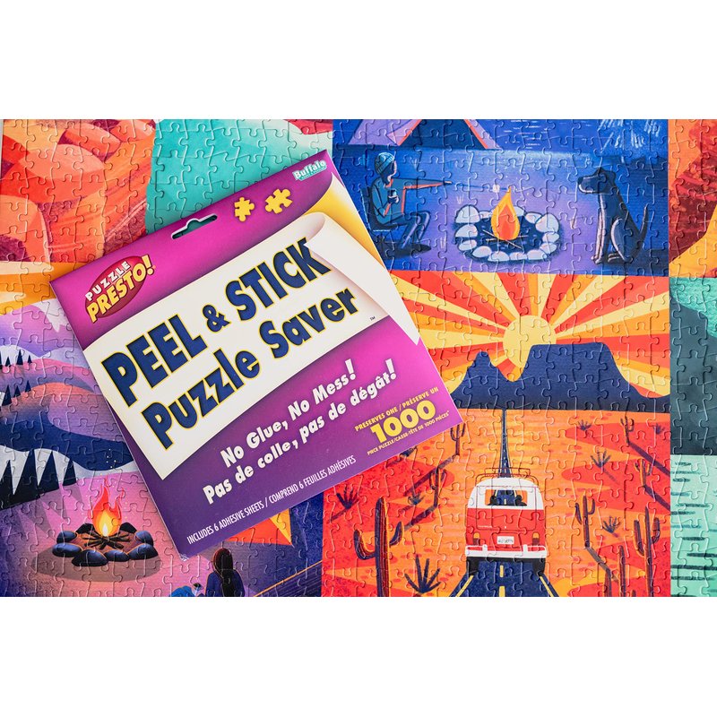 - COMPATIBLE WITH ANY PUZZLE PIECE COUNT – Includes 12 Large Adhesive Sheets, Enough to Preserve Over 9 Square Feet of Finished Puzzle!