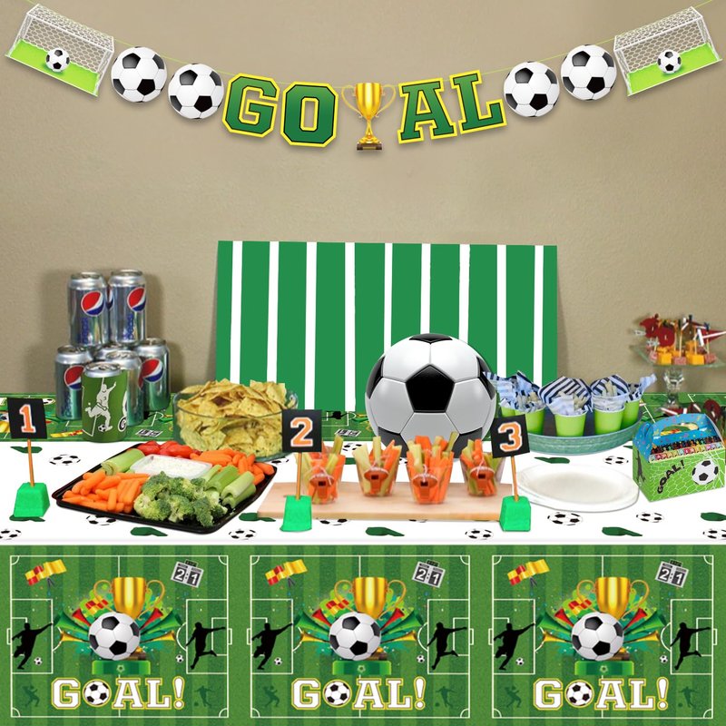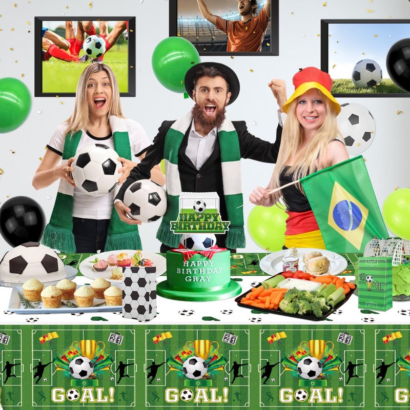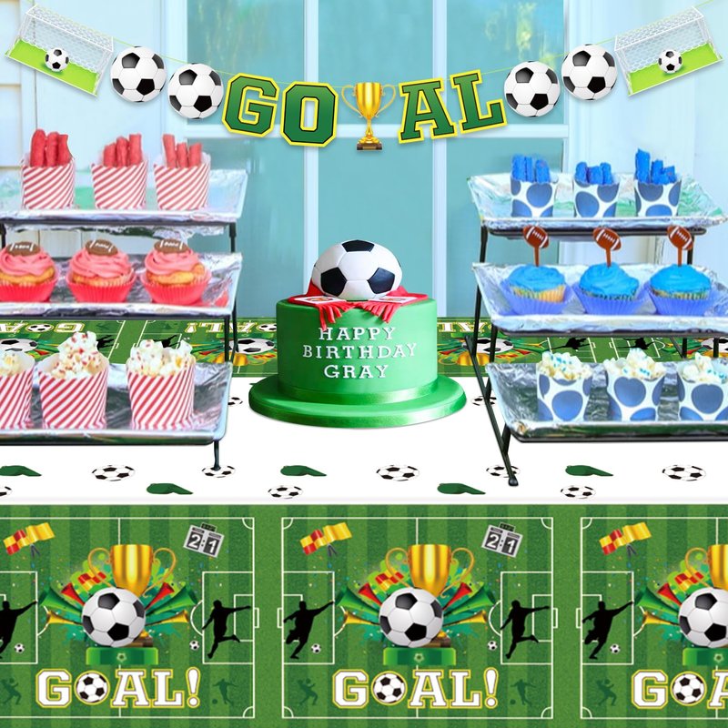 - ⚽Wide Applications: Perfect for indoor or outdoor birthday parties, baby showers, and soccer theme events. Exquisite soccer tablecloths can be used both indoors and outdoors. Lightweight and convenient must be a good helper for picnics. Soccer tablecloths can be used as family photo props; take beautiful and memorable photos or selfies with this logo decoration, a versatile and practical party decoration; make your large parties charming and wonderful.