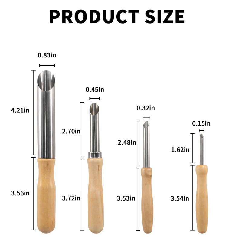4 Pack Stainless Steel Circular Clay Hole Cutters, Wooden Handle Clay Tools for Drilling and Sculpture, Pottery Tools and Supplies