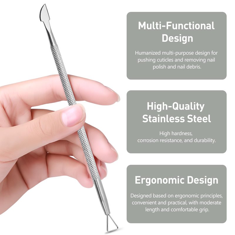 - Durable Stainless Steel: Made from high-quality stainless steel, our cuticle pushers are durable, rust-resistant, and offer strong abrasion resistance for long-lasting use.