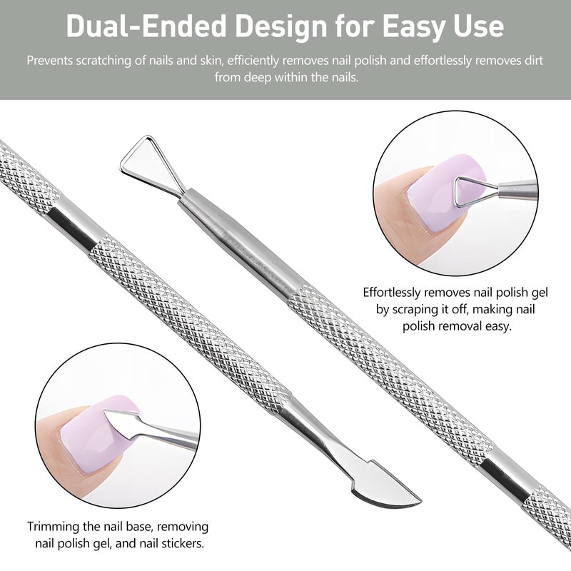 - Sharp Blades: Equipped with sharp blades, our cuticle pushers enable thorough removal of nail polish, especially on the corners, providing a precise and clean finish.