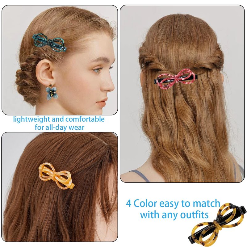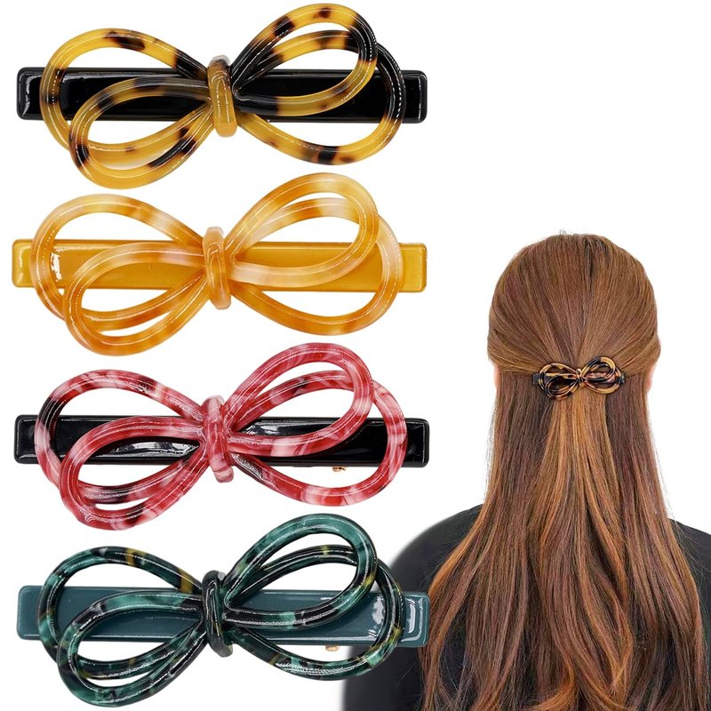 4 Pack Tortoise Shell Bow Hair Clip Alligator Hair Clips Duckbill Hair Clips Acrylic Resin Hair Clips Acetate Hair Barrettes French Design Bow Hair pins Fashion Hollow Bow Hair Clips for Women Girls