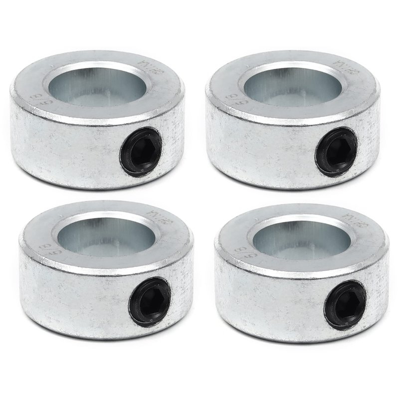 (4-Pack) Zinc Plated Carbon Steel 5/8” Bore Shaft Collars Sets - Screw Style Bore Shaft Collars with 5/8” Bore Size, 1-1/8 Outer Diameter, and 1/2 Width - Suitable for Automotive and Industrial Use
