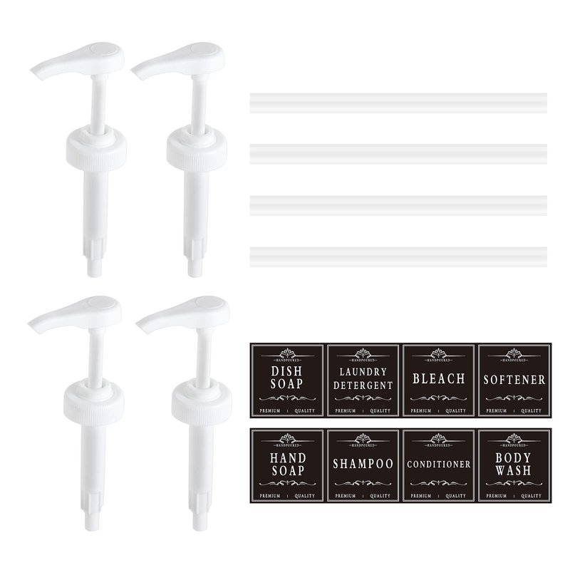 4 Packs Gallon Pump Dispenser, Leak Proof Dispenser for Hand Soap, Laundry Detergent, Sanitizer, Shampoo - 128 OZ Capacity - 38/400 Plastic Gallon Pump Dispenser for Household & Commercial