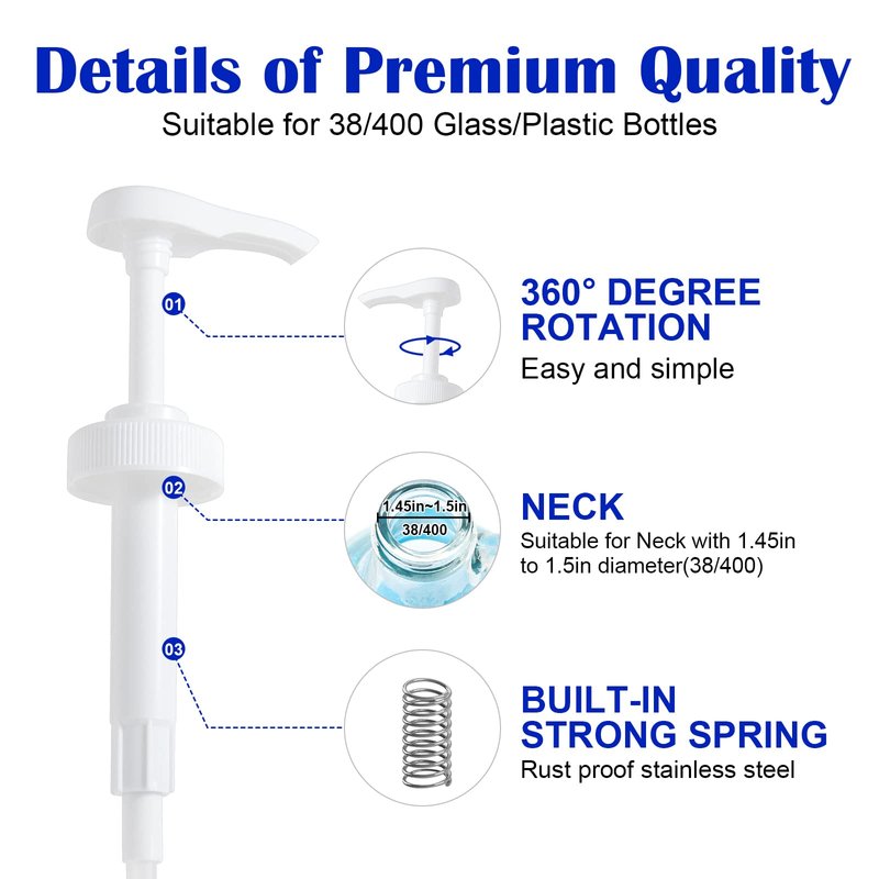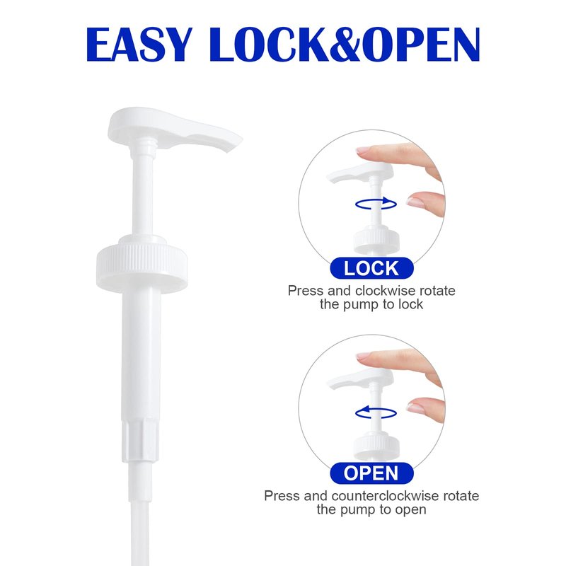 - EASY TO INSTALL: This gallon pump head fits 38/400 size bottles (1.45in to 1.5in diameter). The cap can be tightened in seconds, and the pump has a locking function to prevent accidental contact by children.