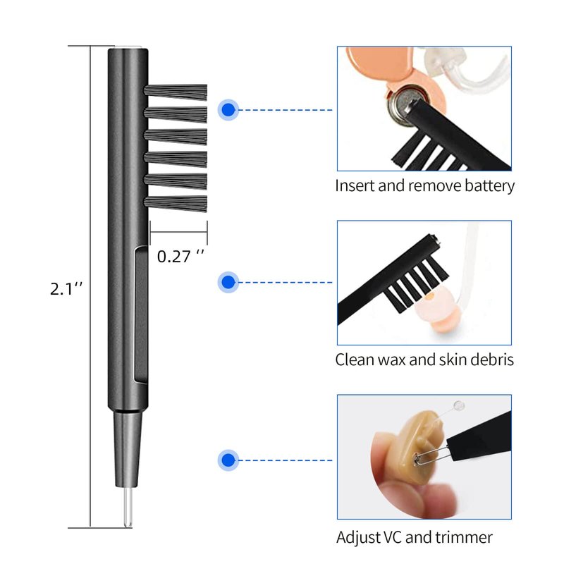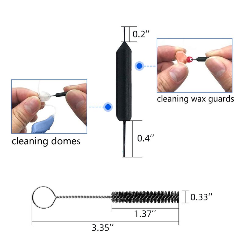 - 3. Complete hearing aid cleaning kit: you will get 5 pieces of hearing aid cleaning tools in a carry case, including multifunction cleaning brush with wax loop and magnet, vent cleaner, wax guards and dome cleaner, cleaning brush and microfiber cloth. Cleaning brush is made of soft and lightweight nylon material, easy to clean, it will not scratch or damage the hearing aid during use, all of these cleaning brush kits are carefully made to ensure a deep and quick cleaning.