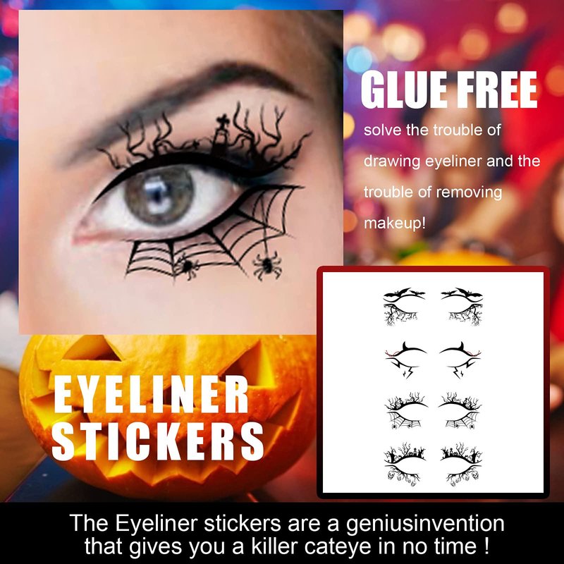 - Halloween Design: These eye shadow stickers are designed into many different shapes about Halloween, such as bats, spider webs, skull, the tree of death and more. The Temporary Tattoo Stickers are designed into bats, spider webs, you can make a unique Halloween party makeup with these set.