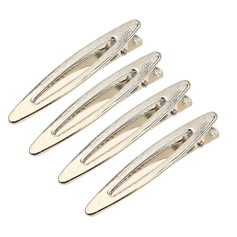 4 Pcs 2.3 Inch Brushed Cut-out Metal Spike Alligator Duck Bill Hair Clips Bright Duckbill Hair Barrettes Chic Hair Clips for Styling Short Hair (Silver)
