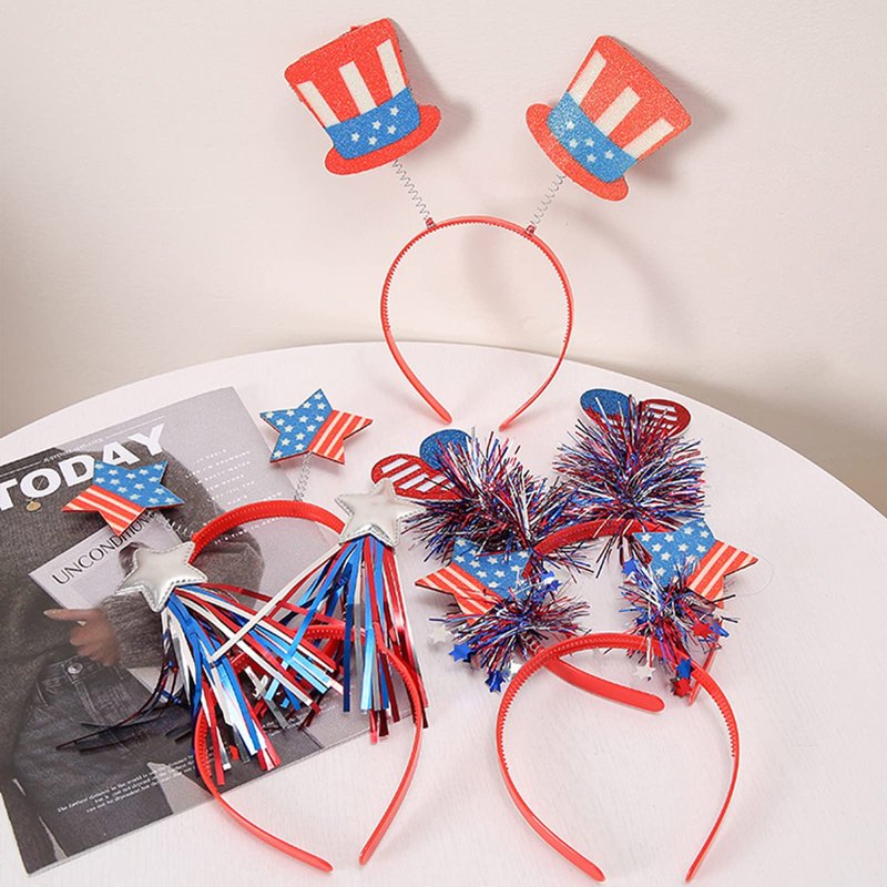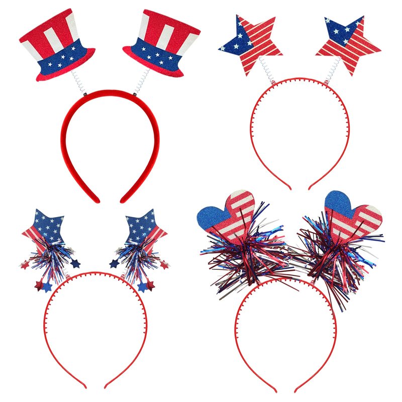 - EYE-CATCHING PATRIOTIC HEADBAND - You will get 4 pcs 4th of july independence day head boppers headpiece with classic elements, like uncle sam top hat, heart with american flag and glitter star. Cute and pretty, sexy and nifty, naughty yet innocent, multiple temptation together wearing this hair bands