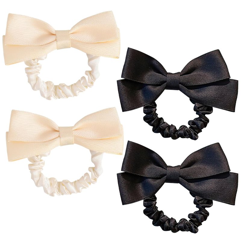 4 Pcs Bow Scrunchies Elastic Hair Ties, Silk Bowknot Hair Bands, Cute Ponytail Holder Hair Ropes, Wedding Party Hair Styling Accessories for Women Girls Teen Thick Thin Long Hair