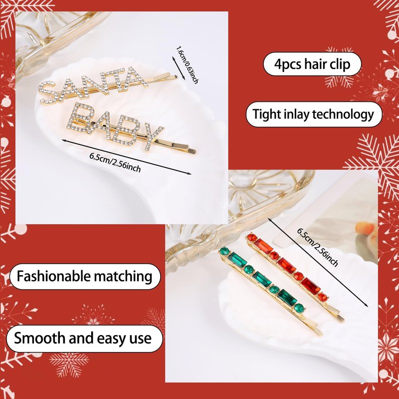 - Lovely Holiday Hairpins: You'll be shining at the Christmas party when you accessorize with our sparkle rhinestone hair clip, they can match your different hair styles like ponytail, curly hair and braiding hair