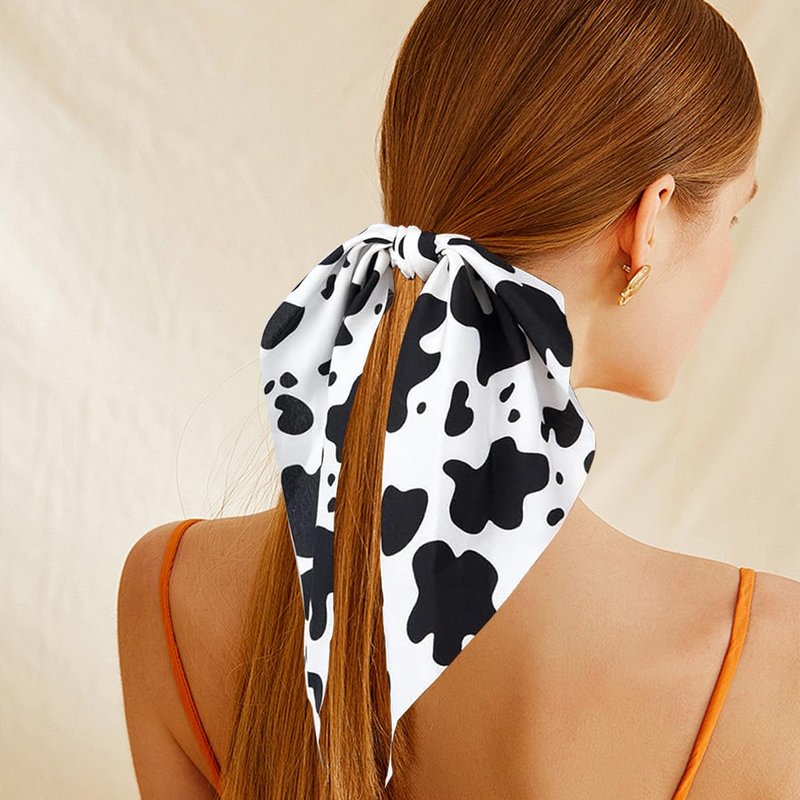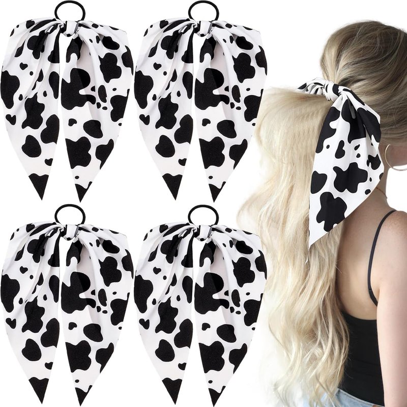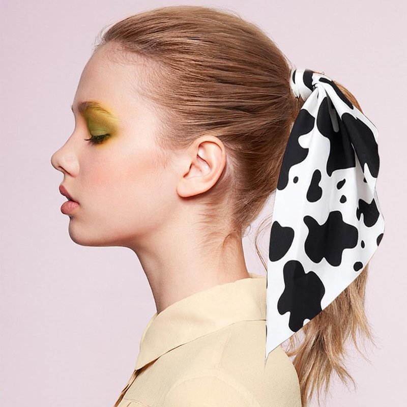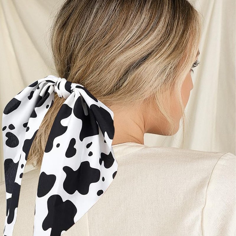 - 【Unique Design】: The Cow Print Hair Band combines a bow and rubber band to create a flowing and cute effect