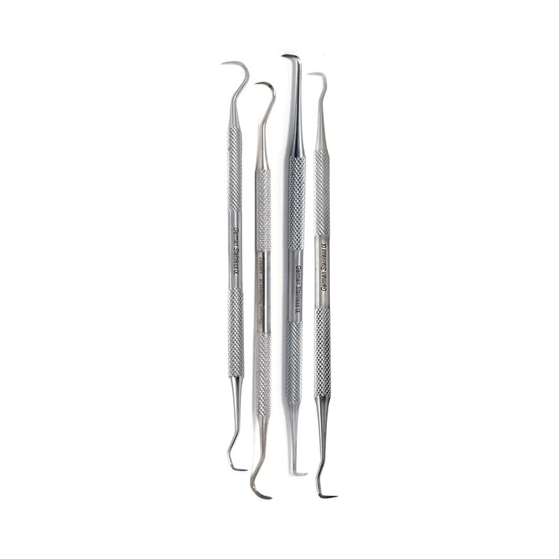 4 Pcs Double Ended Dental Scaler Made of Stainless Steel Reusable Tool Plaque & Tartar Remover Pick Suitable for Professional or Personal Use & Pet Oral Hygiene Care with Knurled Handle