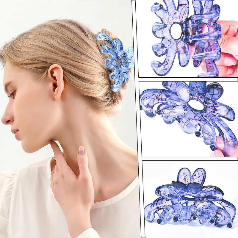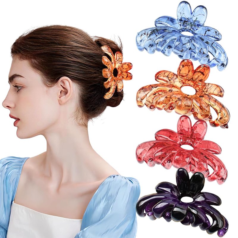 - 【Package Includes】You will receive 4 pcs of Flower Hair Claw Clips in 4 colors( blue, champagne, red, purple ), enough meet your daily needs and replacement, you can share it with your friends.