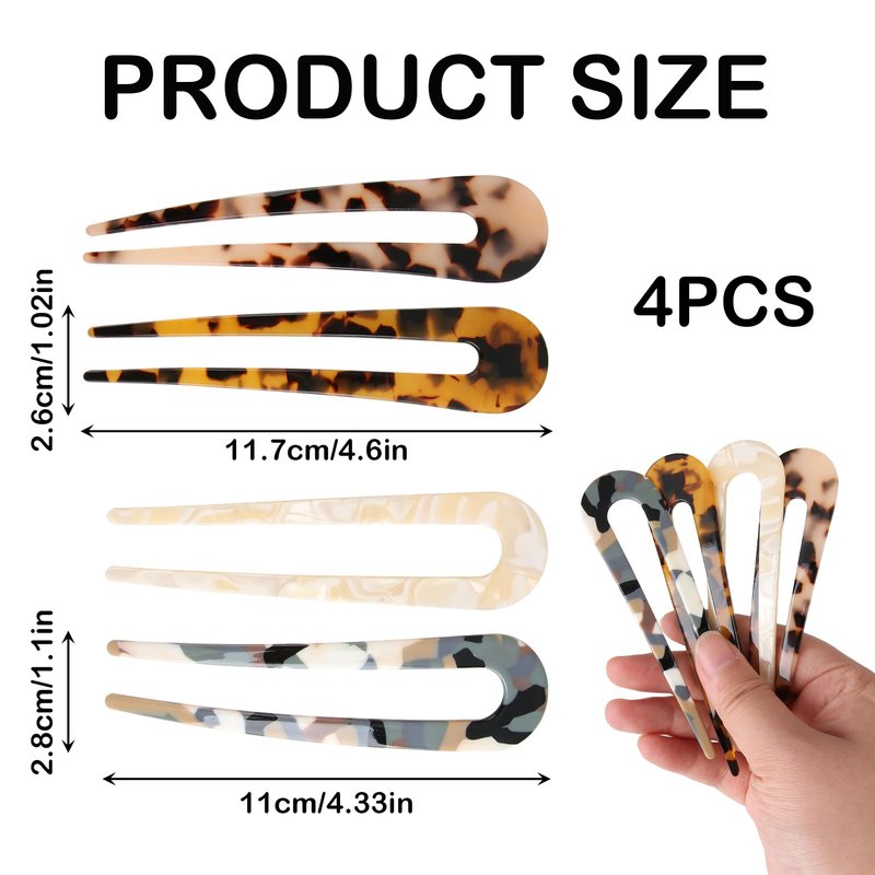 4 PCS French Hair Pin, U Shaped Acetate Hair Pins, 4.6 inch French Twist Hair Pin for Women Girls Hairstyle, Chignon Hair Pin for Thin Thick Hair
