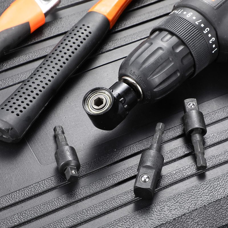 4 Pcs Impact Grade Sockets Adapter Power Drill Sockets Adapter Set with 360 Degree Rotatable Hex Shank Drill Adapters, 105 Degree Angle Screwdriver Drill Bit for Household Workplace Industry (Black)