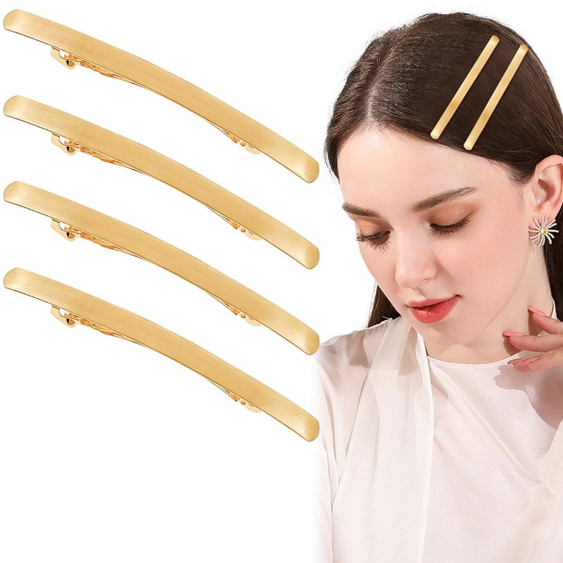 4 Pcs Metal Hair Clips French Hair Barrettes Flat Spring Clamps Strong Hold Vintage Hair Clips Snap Hair Accessories for Women Girls (Gold)