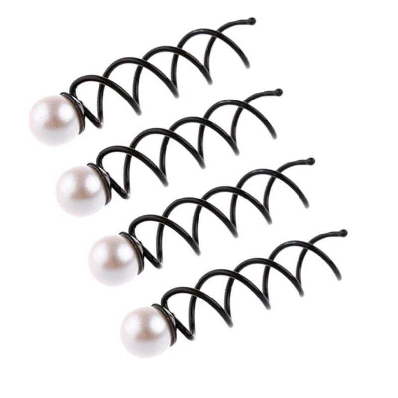 4 Pcs Pearl Spiral Hair Pin, Lovely Spiral Spin Screw Hair Pins,Artificial Pearl Spiral Spin Screw Hair Pins Spiral Spin Hair Clip Bun Stick for Women Style DIY Bobby Pins Twist Insert Hairpins