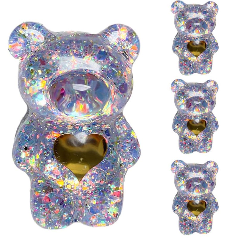 4 Pcs Purple Mobile Phone Finger Stand Cute Bear Doll Phone Holder Support Comfortable Grip Anti Slip Creative Flexible Light Cell Phone Stands Adhesive Card Holders