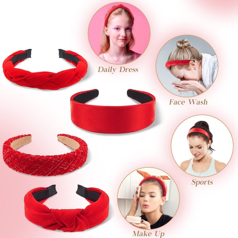 - What You Will Get: the package includes 4 pieces of red headbands for girls in 4 different styles, such as plain red, knotted, braided and so on; The enough quantity and styles can meet your daily using and replacement needs