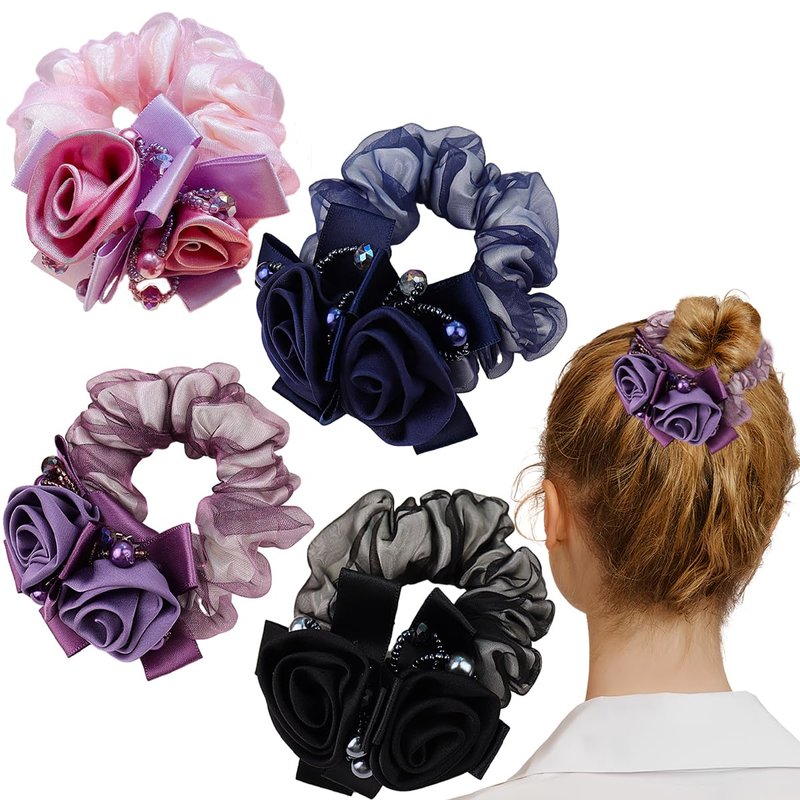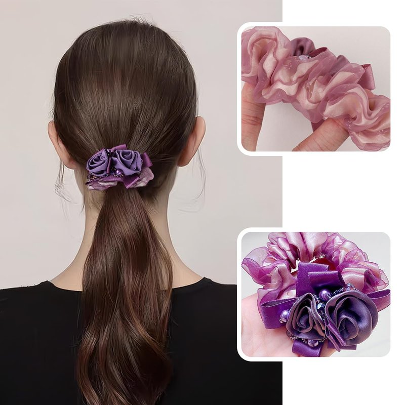These fancy flower scrunchie hair ties are great for fastening thin or thick hair of girls and women.