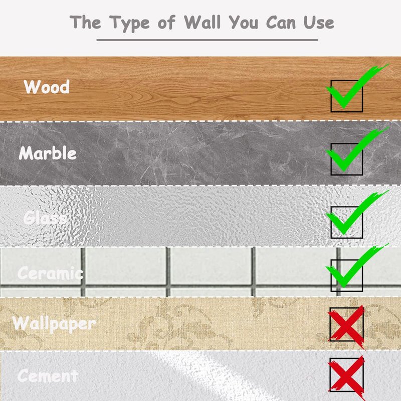 - 【Wide Application】:These silicone wall hooks have extremely sticky backing and can be firmly stick to smooth surfaces such as marble,desk,plastic,wood,glass,metal and rubber,but are not suitable for bumpy or dusty surfaces such as wallpaper and cement walls.