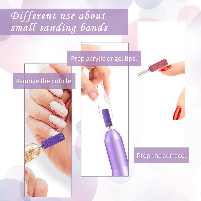- 【Nail Tools for Nail Tech Mush Have】This sanding bits for nail drill are suitable for use in nail salons, beauty salons, spas, and DIY home manicures, manicures, and pedicures, and it is a practical tool for both professional manicurists and novices. In addition, nail drill bits sanding bands are also an ideal gift for women because they can help save a lot of time and money on manicures.